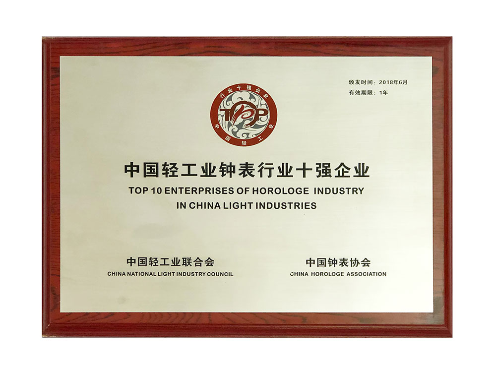 雷諾表榮獲“中國輕工業(yè)鐘表行業(yè)十強(qiáng)企業(yè)
